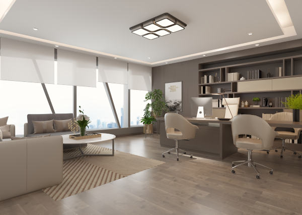 總經(jīng)理辦公室設計中顏色搭配很重要,比如:黃色、橙色、紅色、藍色等,多種顏色搭配在一起給人一種活潑跳躍的感覺;選擇大面積白色給人一種明亮感;棕色給人穩(wěn)重成熟感??偨?jīng)理辦公室裝修很少使用色差大的顏色,一般都是灰色、棕色等作為主色調(diào)。黑與白的搭配空間、強烈的色彩反差或是全部淺色調(diào)處理的素雅搭配,這兩種截然不同的配色方案都可以滿足您時尚前沿的領(lǐng)導辦公室設計設計的需求。云杉、淺橡木、樺木、櫻桃木、梣木五種淡雅明快的款式搭配上中淺色系的家具,簡約時尚的風格就在不經(jīng)意間形成了。BOSS的辦公室裝修設計可以選用深色系。一個企業(yè)的領(lǐng)導,應該有著不同于員工的威嚴,用深色系可以襯托出權(quán)威和莊重,再配以清新亮麗的顏色配飾作為點綴,莊重不顯沉悶,使得看起來不會很壓抑。