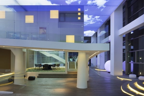 盡管這是個(gè)室內(nèi)空間,裝修設(shè)計(jì)師仍希望通過大自然的圖案為來客營造舒適的感覺。天空圖案的天花,樹形的支柱,植物圖形,明亮的淺色調(diào),木制材料和流線型的花園等,這些眾多的元素都將這個(gè)展廳裝點(diǎn)得與傳統(tǒng)意義上的售樓展廳與眾不同。