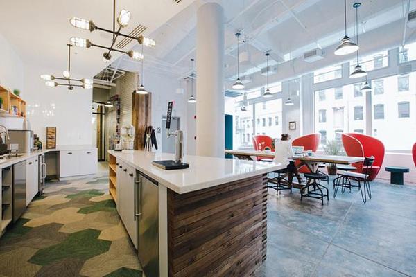 上海辦公室裝修設計公司-領企裝飾今天要與大家分享的是,美國波士頓WeWork的辦公室裝修設計。其辦公室自身散發(fā)著獨特的工業(yè)風特質:高聳的梁架天花、堅固的粗壯的柱子以及斑駁的水泥地面。WeWork占據(jù)這幢九層磚混建筑的五個樓層。巨大的玻璃外窗,讓陽光自由傾瀉入繽紛多彩的公共區(qū)域。位于后部的開放辦公區(qū),人們可以將塞岬海峽的美景一覽無余。地下室的休閑區(qū)類似一個運動吧,經(jīng)過一天的緊張工作,人們可以在此盡情放松享受快樂時光。