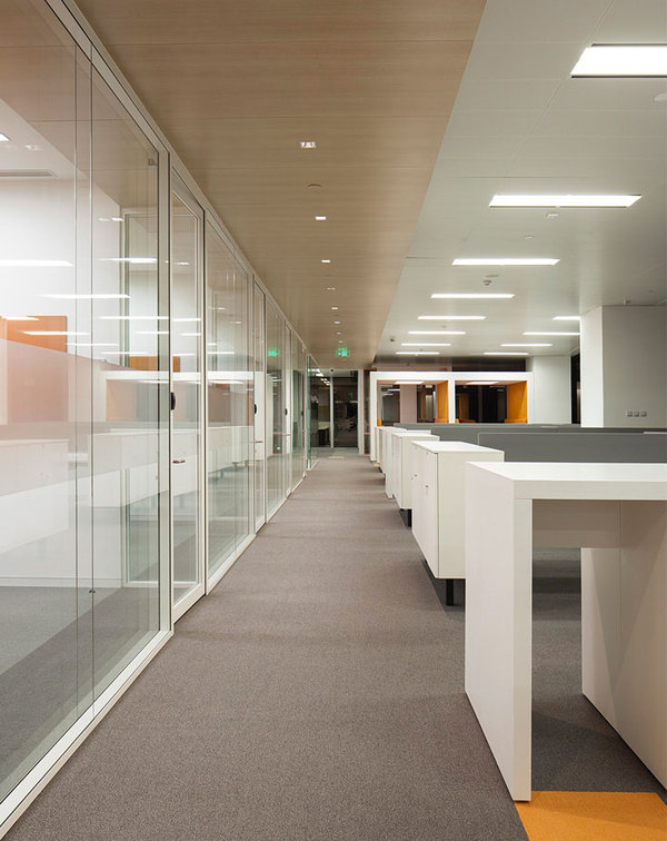 原有的空間為8米高的挑空層,經(jīng)過(guò)構(gòu)思保留了3塊面積為400多平米的挑空層,其他區(qū)域作為新的辦公層空間。