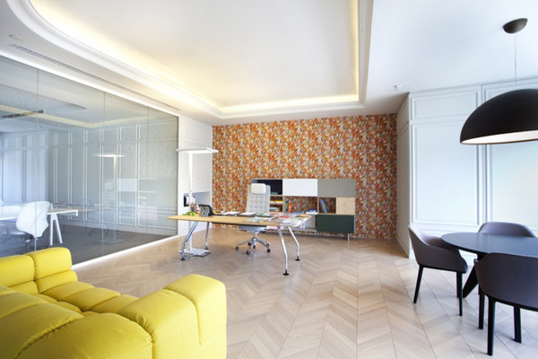 洽談室的設(shè)計(jì),設(shè)計(jì)師采用了白色、灰色、黃色、黑色顏色之間的轉(zhuǎn)換,來體現(xiàn)洽談室的價(jià)值,人體對顏色很敏感,多種顏色經(jīng)過設(shè)計(jì)師的重新搭配,更顯得時(shí)尚、創(chuàng)新。