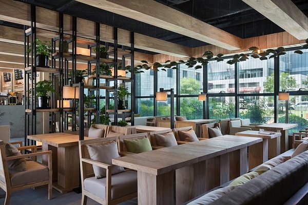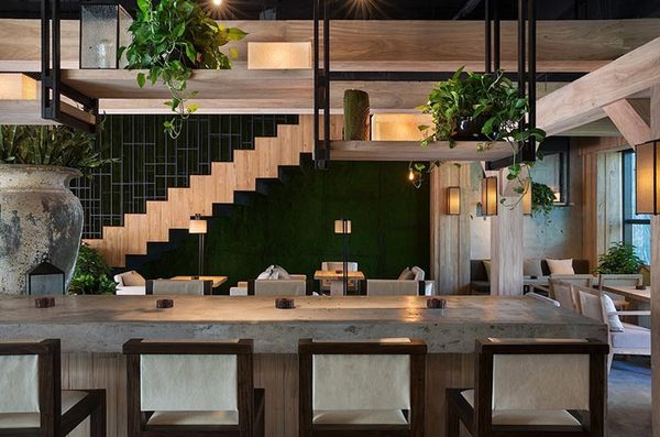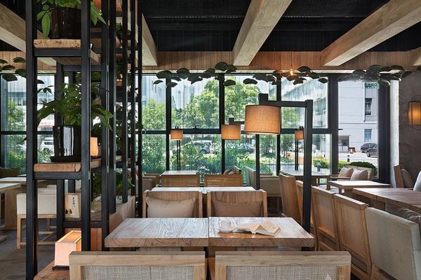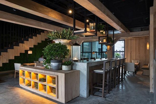 深色木條作為室內(nèi)墻面的主要材料奠定了整個(gè)空間的基調(diào),而整個(gè)中餐廳桌椅和配飾運(yùn)用了不同程度的灰色,營造出一種神秘的氛圍,這就是該餐廳裝修設(shè)計(jì)的魅力!