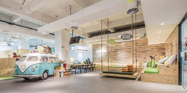 休息區(qū)域的設(shè)計(jì),創(chuàng)意來(lái)自臨時(shí)休息站,汽車在旁仿佛會(huì)載人穿越無(wú)限空間,休息區(qū)域因此凸顯出存在的重要性,為員工打造偷懶于現(xiàn)世的菱形空間。