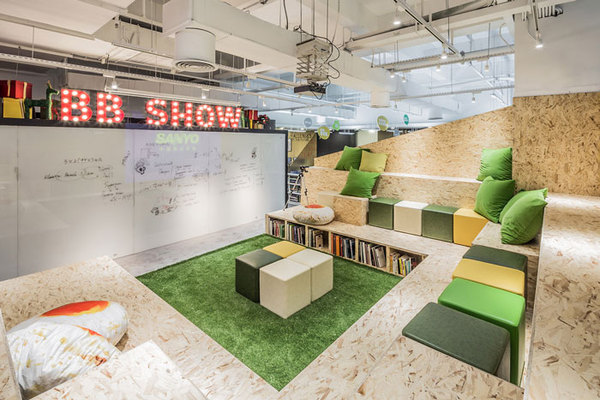 辦公區(qū)域的設(shè)計(jì),設(shè)計(jì)師將奇思妙想融入空間,交流區(qū)域的背部被設(shè)計(jì)師開(kāi)發(fā)出各式各樣的洞口,為的就是安置辦公設(shè)備,以此滿足辦公需求,真可謂是創(chuàng)意無(wú)限。