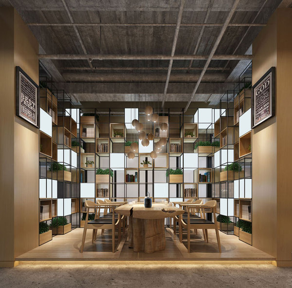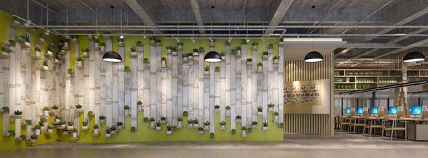 洽談區(qū)域的設(shè)計,設(shè)計師特意設(shè)計成綠意空間,設(shè)計師認(rèn)為人們往往遠(yuǎn)離大自然,因此需要在空間中多增添一些綠色,雖然面積有限,但能給交談提供一個很好的洽談環(huán)境。
