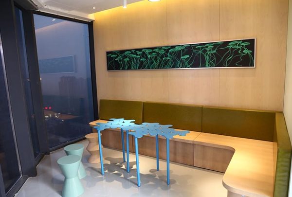 大片的綠植,大量的木質(zhì)物品,以及各種形狀交織,讓原本繁瑣無趣的工作立馬變得千變?nèi)f化,讓你充滿好奇,每天給你一點(diǎn)新鮮!