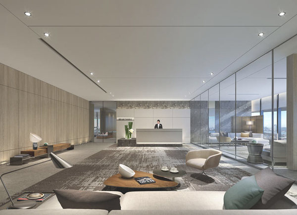 平面圖的設(shè)計:設(shè)計師在設(shè)計的時候,將前廳接待、會客區(qū)、接待區(qū)域融合在一起,通過動線將各個區(qū)域進行連接,同時以動線連接為起點向各個區(qū)域進行延伸,以此形成一個四通八達的空間動線將各個區(qū)域**的連接在一起。