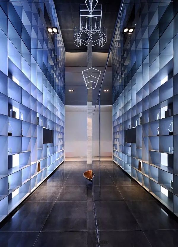 平面與立面的構(gòu)成在這個(gè)區(qū)域被潛移默化的表達(dá)出來(lái),闡述著今世的解構(gòu)主義理念,實(shí)在、虛幻以及兩者的聯(lián)系。格子內(nèi)陳設(shè)著各項(xiàng)世界新的榮譽(yù)。在此基礎(chǔ)上,是非的界面在燈火的效果下煥宣布異樣的視覺(jué)感染力。