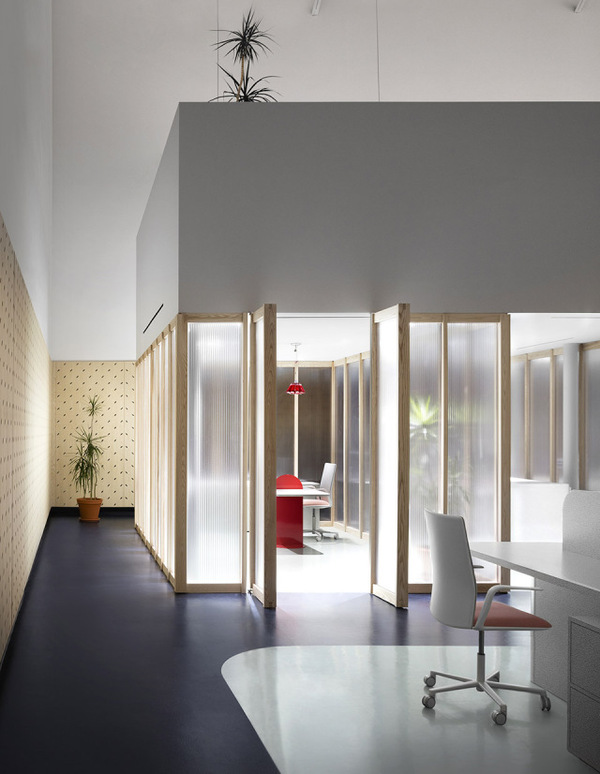 Gruppo Campari對于多倫多辦公室的設(shè)計(jì)要求十分簡單,即創(chuàng)造一個(gè)充分體現(xiàn)公司精神并且可以激發(fā)使用者靈感的空間。Campari標(biāo)志性的海報(bào)有上百年歷史,種類豐富,充滿創(chuàng)意。建筑師從海報(bào)和食材中提取顏色、圖案以及形狀,并將它們層層重疊,直到形成一個(gè)平衡的三維空間。