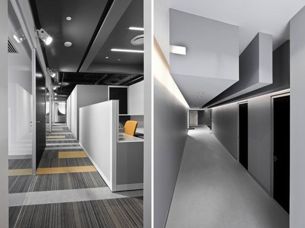 辦公室設(shè)計(jì)的辦公區(qū)域和走廊,灰色也不會(huì)顯得單調(diào)?;疑梢允堑匕?,作為整個(gè)空間的輔助;也可以是主體,就像兩側(cè)墻壁上明暗不同的灰色組成的圖畫,吸引眼球。