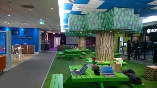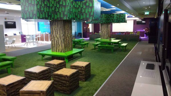 方塊積木一般的樹,塊狀的藍(lán)天白云。這是什么,相信不用小編多說(shuō)了吧!這個(gè)Minecraft(我的世界)風(fēng)格的辦公室設(shè)計(jì)是微軟公司在英國(guó)的一家公司的辦公室設(shè)計(jì)。整個(gè)辦公室風(fēng)格都被設(shè)計(jì)成Minecraft風(fēng)的,置身于這樣的辦公室空間之中讓小編不僅想掄起斧頭砍下一塊材料收藏起來(lái)了呢。