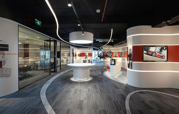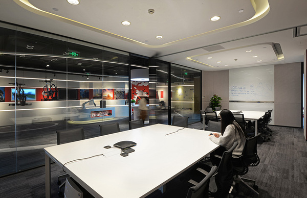 上海領(lǐng)企創(chuàng)裝飾公司分享的這套網(wǎng)絡(luò)科技辦公室裝修設(shè)計(jì)圖中,辦公室前臺(tái)及展廳的設(shè)計(jì)采用了弧形墻體,墻體上的弧形燈帶、天花上的吊燈以及不同顏色地毯拼接而產(chǎn)生曲線元素貫穿整個(gè)展廳空間,帶來(lái)極強(qiáng)的視覺(jué)延伸感。配合了VR等互動(dòng)體驗(yàn)裝置,以及實(shí)體產(chǎn)品,為訪客帶來(lái)富有科技感的體驗(yàn)感受。提高空間的功能性和使用效率,大會(huì)議室可以在需要的時(shí)候由移動(dòng)隔斷分割為兩個(gè)獨(dú)立的會(huì)議室使用。下面領(lǐng)企設(shè)計(jì)創(chuàng)裝飾公司小編帶大家看一下1200科技公司辦公室裝修案例!