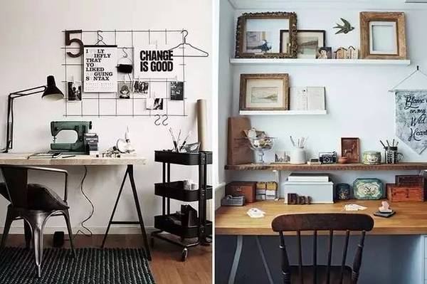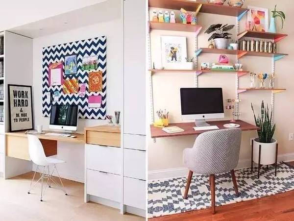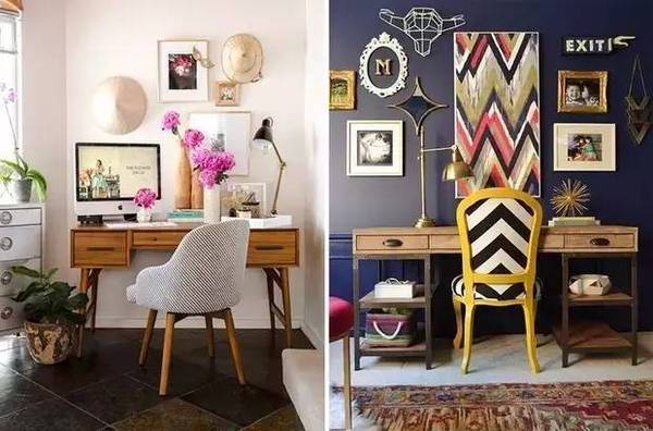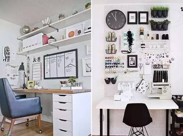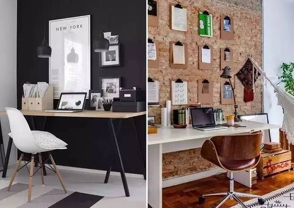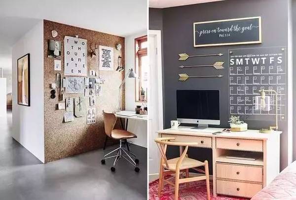 自由職業(yè)或是平時的工作沒有很強烈的需求的話,那就把它打扮的創(chuàng)意滿滿吧!像軟木墻或是任務(wù)墻這種墻面裝飾**是吸睛的打扮~