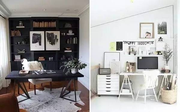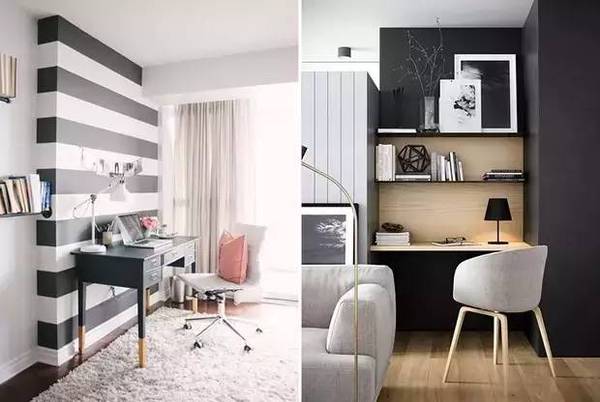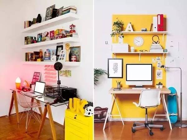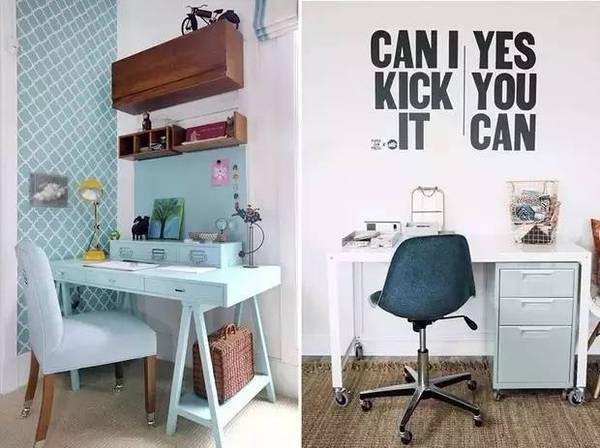 如果家里沒有專門的房間做office的話,在臥室或是客廳的一角也不錯哦~這樣不但能合理利用空間,還能讓你松弛得當(dāng),勞逸結(jié)合。
