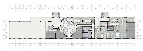 “ 整個創(chuàng)意空間環(huán)境設(shè)計中,處理空間分布是*重要的一環(huán)。寸設(shè)計在整個空間的布局過程中,用一個變向45度的咖啡廳作為整個,功能分區(qū)的中心集合區(qū),而這個集合區(qū)的作用既起到了咖啡廳和大堂的功能,也在流線上解決了分流問題。 ?”