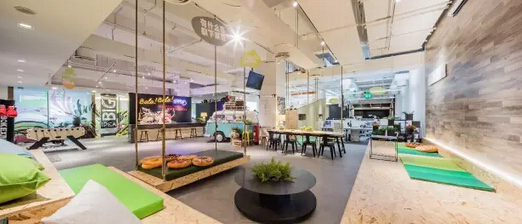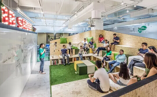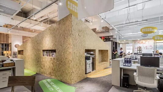 在這里同事與部門領(lǐng)導(dǎo)都是在同一個空間里工作,人與人之間沒有層級之分,營造出一個平等的交流空間,而這些都是以無邊界組織為原型打造出來的辦公環(huán)境。