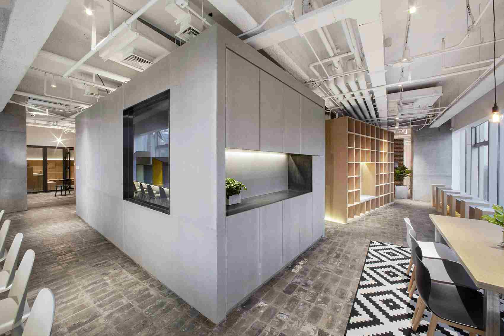 項目位于一座辦公樓內(nèi),業(yè)主租賃三個房間作為學校的辦公和培訓區(qū)域。為了整合全部的空間的使用,設(shè)計師將其打通成為一整個房間。