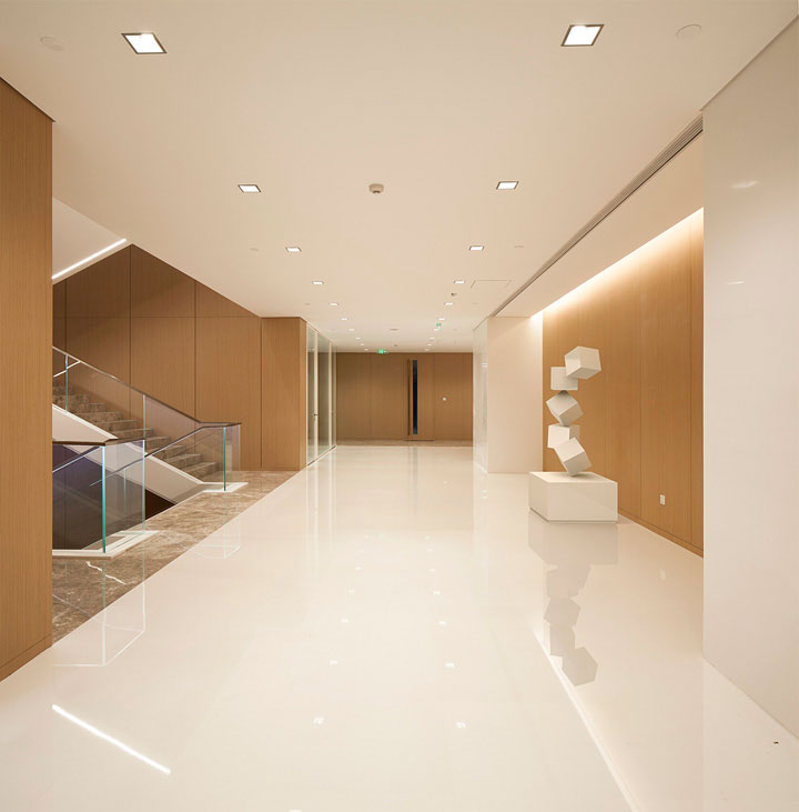 與樓梯遙相呼應(yīng)的是中庭的高管會(huì)議休閑區(qū)。配合迷你花壇營(yíng)造有機(jī)簡(jiǎn)約但**氣勢(shì)的空間。藝術(shù)吊燈為空間增加了韻律與活力。