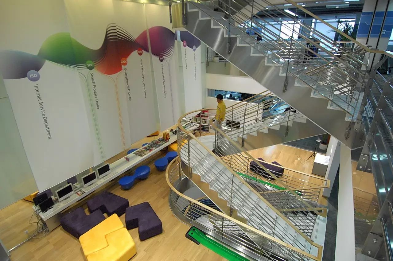 雖然中企哥沒有找到更多阿里巴巴新總部的辦公區(qū)域圖片,但找到了幾張舊總部的辦公區(qū)照片,讓大家感受下阿里巴巴的設(shè)計。