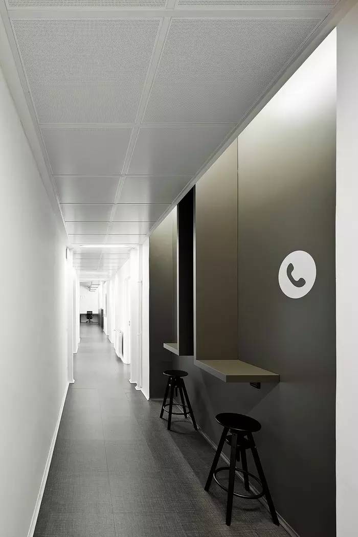 3、黑白灰色調(diào)極簡(jiǎn)主義辦公室設(shè)計(jì)裝修:辦公室的設(shè)計(jì)是非常開(kāi)放的概念,但它們?nèi)匀粰M跨兩個(gè)房間,從主走廊分開(kāi)。設(shè)計(jì)師們?cè)谠O(shè)計(jì)這間辦公室的時(shí)候,就想到了“靠墻工作”的理念。這意味著他們希望將工作空間組織在一個(gè)區(qū)域內(nèi),而將其他區(qū)域留給交流、會(huì)議、休息以及可能在辦公桌外進(jìn)行的工作的更多社交方面。設(shè)計(jì)在高處的暗藏?zé)魩?,讓干凈的白光從天花板上照射下?lái),反射到干凈的墻面,讓物品保持明亮和開(kāi)闊的視野。在簡(jiǎn)潔的線(xiàn)條、極簡(jiǎn)主義的材料、開(kāi)放的空間和對(duì)組織的強(qiáng)調(diào)之間,辦公室提供了一個(gè)幾乎沒(méi)有雜亂干擾的自由空間,讓員工以更謹(jǐn)慎的寧?kù)o感為客戶(hù)服務(wù)。