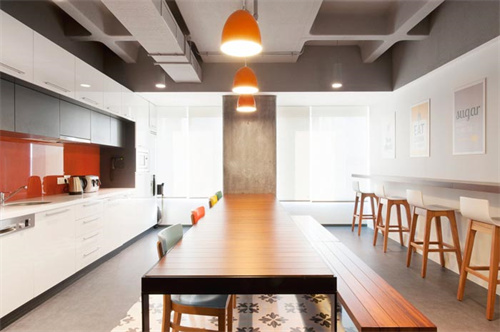 服飾公司簡約風格辦公室裝修:辦公室裝修將吊燈和臺燈組合滿足燈光需求,側(cè)墻的櫥柜解決小飾品、資料排放問題,整體空間設計營造了一個高效率的辦公環(huán)境。洽談區(qū)沒有采用過于生硬的設計手法,而是采用充滿溫暖氣息的布藝沙發(fā)、照片墻等元素,能夠在輕松的環(huán)境中洽談業(yè)務,與品牌定位**契合。