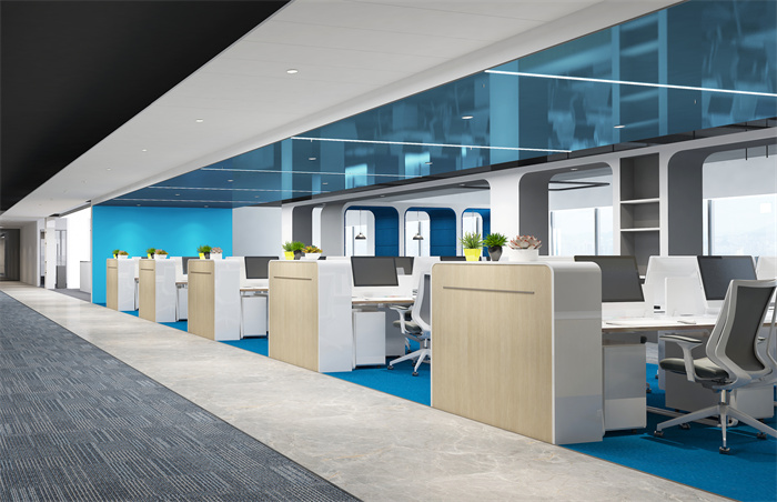 一些工作部門員工之間的隔斷要求不用那么明顯,如果各部門之間員工的獨立度太高,就會形成溝通不暢的問題,反而不利于工作,那么在辦公室裝修設計時可以采用低一些的屏擋、矮柜,同時又能規(guī)劃辦公場所的大概布局,區(qū)別于各個不同的部門。