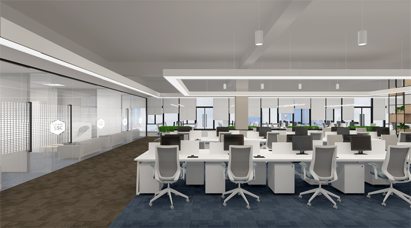 3、*后辦公室內(nèi)的采光一定要好,窗邊不要放置遮擋光線的物體。燈光可以選擇明亮的平板燈、吊線燈、筒燈等。室內(nèi)燈光一定要保持明亮,昏暗的燈光會(huì)讓人在視覺上感覺空間狹小。一些過到盡頭還可以放一些掛畫和裝飾,不僅能夠指引人員的流動(dòng),也能能加強(qiáng)空間的橫向延伸感。