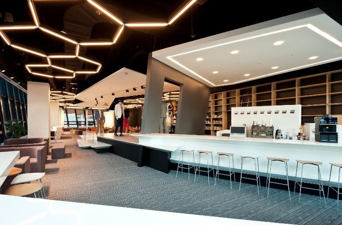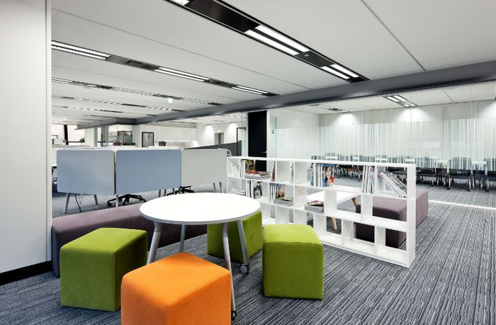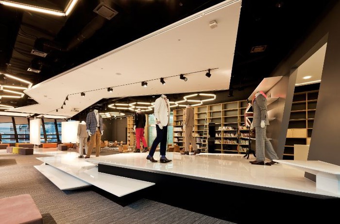 ? ? 德韋爾是一個(gè)工業(yè)材料集團(tuán)公司,化工和時(shí)尚。工作人員可以使用粉末室進(jìn)行頭腦風(fēng)暴和集中工作。辦公空間有不同的主題,根據(jù)他們所工作的品牌。在色彩和高對(duì)比度較強(qiáng)的線性設(shè)計(jì),前衛(wèi)的品牌形象是顯而易見的。